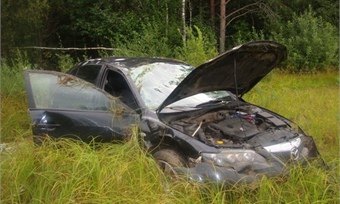 Водитель иномарки 1977 г.р., уходя от лобового столкновения, задел обочину дороги, авто выбросило в кювет, где машина несколько раз перевернулась.