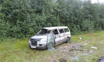Сегодня, около 07:20, на 513 км автодороги Москва – Архангельск в Сокольском районе между п. Мурга и г. Кадников произошло ДТП. По предварительной информации 40-летний водитель 8-местного легкового автомобиля Хендай не справился с управлением авто, выехал на полосу встречного движения, съехал в кювет и допустил опрокидывание авто. В машине помимо водителя находилось 6 человек. На место происшествия выехало руководство УГИБДД области, наряды ГИБДД, скорой медицинской помощи. В момент ДТП на данном участке шел додждь. В результате ДТП за медицинской помощью обратились 4 человека: водитель 1975 г.р., мужчины-пассажиры 1980, 1947 и 1974 г.р. - ушибы, и пасажирка 1987 г.р. - вывих плеча.