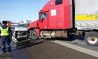 Сегодня около 10:15 на 142 километре трассы Вологда – Новая Ладога произошло дорожно-транспортное происшествие. По предварительным данным мужчина 1976 г.р., управляя тягачом Фредлайнер, не выдержал безопасную дистанцию до впереди идущего грузовика Вольво и допустил с ним столкновение. В дальнейшем тягач выехал на полосу встречного движения, где столкнулся с автомобилем Сузуки под управлением мужчины 1982 г.р. В результате ДТП водитель внедорожника получил закрытую черепно-мозговую травму и сотрясение головного мозга, пассажирка иномарки, девушка 1991 г.р., также получила сотрясение головного мозга. Пострадавшие госпитализированы. Сотрудники ГИБДД устанавливают обстоятельства происшествия. По материалам проверки будет принято процессуальное решение