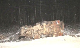 ДТП случилось на 5 километре подъездной дороги к селу Двиница. 53-летний водитель автобуса не справился с управлением и допустил съезд автомобиля в кювет. Автобус опрокинулся, в результате чего травмы получили четыре пассажира. В результате этой аварии 59-летний мужчина был госпитализирован в больницу в состоянии комы с тяжелой черепно-мозговой травмой и ушибом головного мозга. Еще три пассажира получили различные травмы. 43-летний мужчина госпитализирован с растяжением связочного аппарата шеи и подвывихом ключицы, у 49-летний пассажир автобуса сотрясение ГМ, еще один мужчина лечит ушиб руки амбулаторно.
