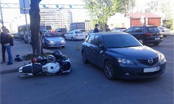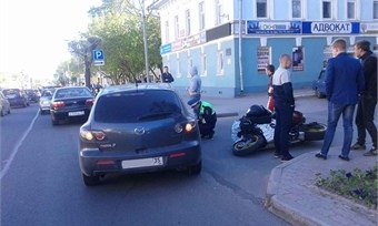 ДТП произошло вчера около 17:30 на Советском проспекте у дома № 83. По предварительной версии, водитель автомобиля Мazda 3 при повороте направо врезался в мотоцикл Suzuki GSX-R 600, под управлением молодого человека