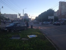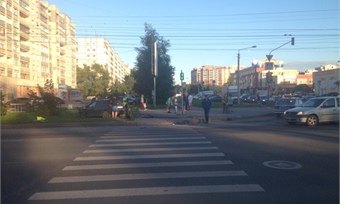 ДТП произошло сегодня около 18:40. На перекрестке улиц Ленинградская и Новгородская областной столицы столкнулись два автомобиля «Ниссан Альмера» и «Шевроле Лачетти». В результате столкновения «Шевроле» выбросило на тротуар, где иномарка снесла дорожный знак «Пешеходный переход» и сбила девушку.