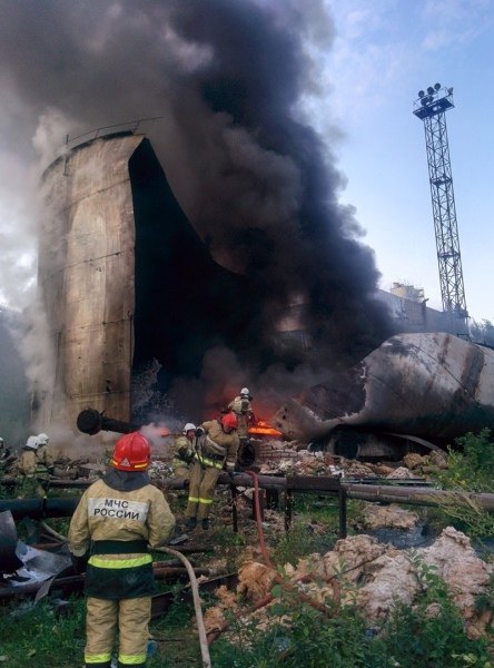 Серьезный пожар произошел на территории бывшего мазутохранилища. Горели емкости, в которых в прошлом хранили мазут.