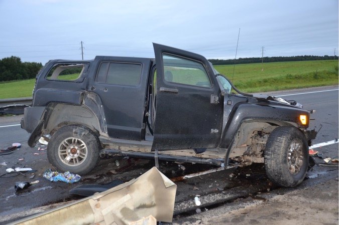 В результате удара КАМАЗ выбросило в кювет, а его водитель получил повреждения. Водитель Хаммера и его 60-летняя пассажирка, сидевшая за ним, погибли на месте аварии. Еще одна женщина 1983 г.р., а также мальчик 2008 г.р. и девочка 2011 г.р., находившиеся в салоне Хаммера получили травмы различной степени тяжести.