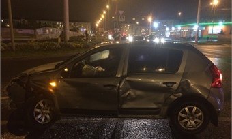 На перекрестке в патрульную машину врезался автомобиль «Рено», под управлением 31-летнего водителя. Иномарка двигалась на разрешающий сигнал светофора.