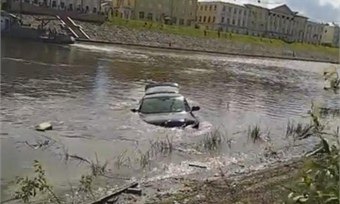Двое гостей облстолицы нарушили правила дорожного движения, находясь за рулем автомобиля «ŠKODA». За ними выехал патруль ГИБДД. Убегая от погони, туристы вылетели прямо в реку Вологду, неподалеку от Красного Моста.