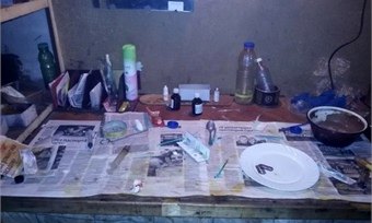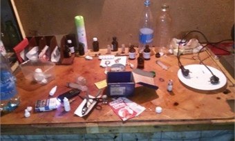 В гараже находились три наркомана, уже под воздействием наркотических веществ. Так же в помещении бокса стояла стеклотара с красноватым веществом, шприцы и инструменты для получения наркотиков. Как оказалось, изъяли 0,197 гр дезоморфина.