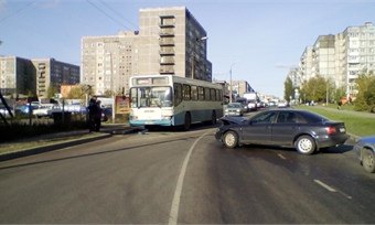 Происшествие случилось на Фанере сегодня днем. Молодой мужчина на Ауди А4 не смог совладать с управлением и вписался в 37 автобус.