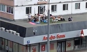 По неофициальной информации очевидцев люди загорали на крыше того самого банка, в котором 23 мая произошел захват заложников.