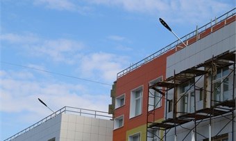Яркий, зелено-оранжевый фасад теперь уж точно порадует глаз ребят с началом учебного года. Также подрядчик сейчас занимается установкой светодиодных светильников и меняет двери на аварийных и дополнительных выходах из здания школы.