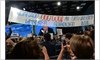 На сегодняшней пресс-конференции президента журналисты не используют большие таблички и плакаты Им запретили это делать, ограничив размером А3