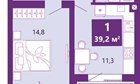 Комнаты - раздельные. предчистовая. Серия дома - Индивидуальный проект. 1-комн. квартира с предчистовой отделкой в ЖК "Сиреневый бульвар" на 4 этаже. Общая площадь: 39.9 кв.м., жилая: 14.8 кв.м., площадь просторной кухни-столовой: 11.3 кв.м. Все окна выходят на одну сторону. В квартире одна лоджия, один совмещенный санузел. Высота потолков 2.7 м.